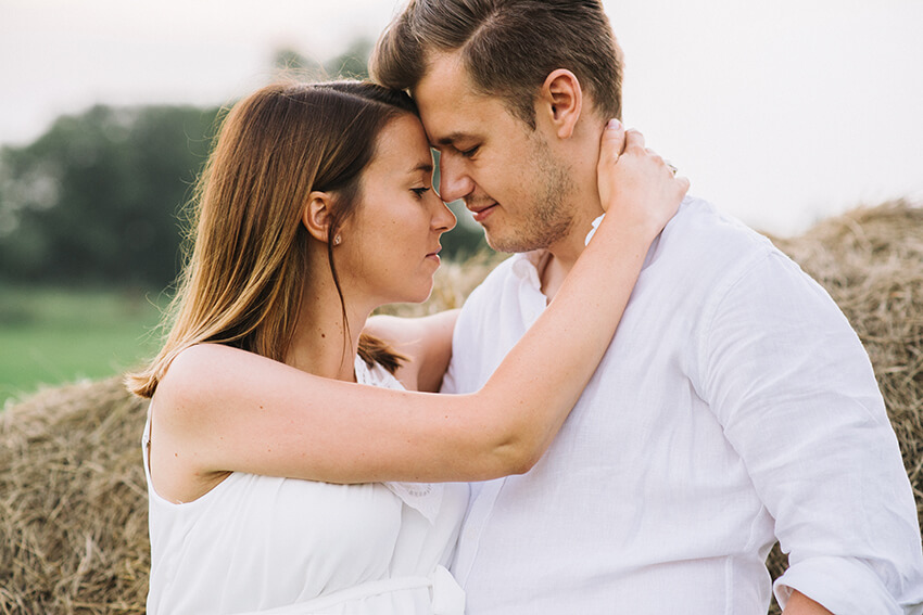 Niedługo później mieliśmy okazję do kolejnego spotkania i powrócenia do miejsca w którym wykonaliśmy naszą ślubną sesję plenerową. Bardzo lubimy zielone okolice Puszczykowa i właśnie tam pojechaliśmy. Kolejną okazją do spotkania była nasza sesja ciążowa. I muszę przyznać, że jestem bardzo zadowolona z decyzji wykonania tej sesji. Czas ciąży minął mi bardzo szybko, a dzięki tym zdjęciom mogę wracać do niego kiedy tylko chce. Nie mogę się też doczekać momentu, kiedy mojej małej Helence będę pokazywała te piękne obrazki i opowiadała jak to było kiedy była jeszcze w brzuszku. Przy tym spotkaniu postawiłyśmy całkowicie na wygodę i komfort. Prosta, luźna, biała sukienka i biała koszula mojego męża były idealnym wyborem. Postanowiłyśmy całkowicie skupić się na naszej miłości i moim brzuszku. Efekt, jak dla mnie, jest powalający. Jestem bardzo zadowolona z wykonania tej sesji w plenerze, bo po pierwsze spędziliśmy bardzo miłe letnie popołudnie, blisko natury i złapaliśmy bardzo dużo promieni słońca. Po drugie plener daje niekończące się możliwości. Gosia dawała nam cenne wskazówki i tryskała pomysłami na piękne ujęcia, a my świetnie się przy tym bawiliśmy. Po trzecie jest to wyjątkowy moment skupienia się na tej małej istotce, która niedługo ma przyjść na świat i celebrowania ciąży. Polecam wykonanie takiej sesji każdej przyszłej mamie, oczywiście pod warunkiem że wykonacie ją z Frames! ;)