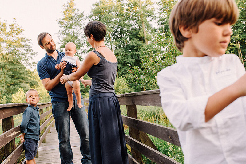 Czas pstrykania zdjęć upłynął nam na eksplorowaniu tajemniczych zakątków, wygłupach, śmiechu i miłej przechadzce po malowniczej okolicy. Chłopcy dzięki uprzejmości „cioci i wujka” mieli nawet okazję sami spróbować się w roli fotografów co bardzo przypadło im do gustu ;) Cała sesja była tak naprawdę naszym normalnym czasem rodzinnym, który przy okazji został sfotografowany. Już po kilku minutach od rozpoczęcia nikt nie pamiętał ze jest to „profesjonalna sesja”, nie było żadnej spiny, sztuczności czy nadęcia, tylko fajny wspólny czas naszej rodzinki z dwójką znajomych co lubią robić innym zdjęcia :)