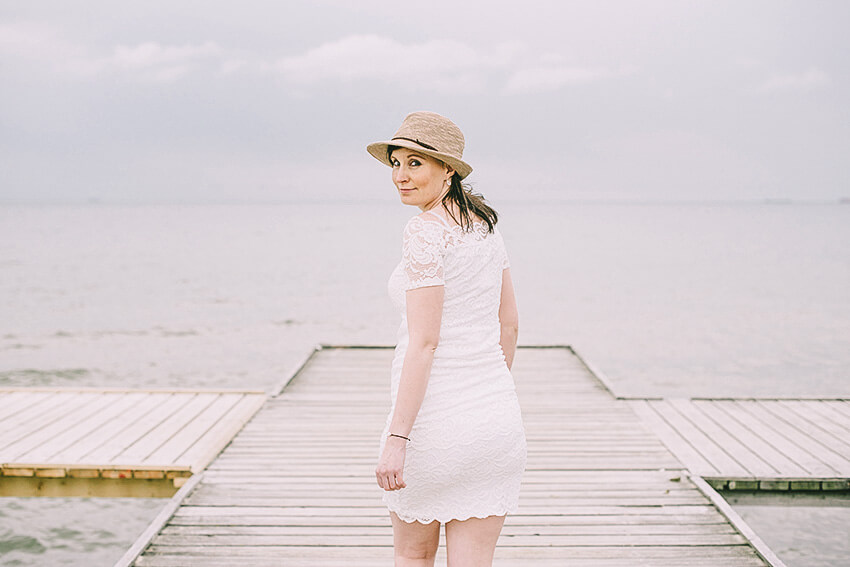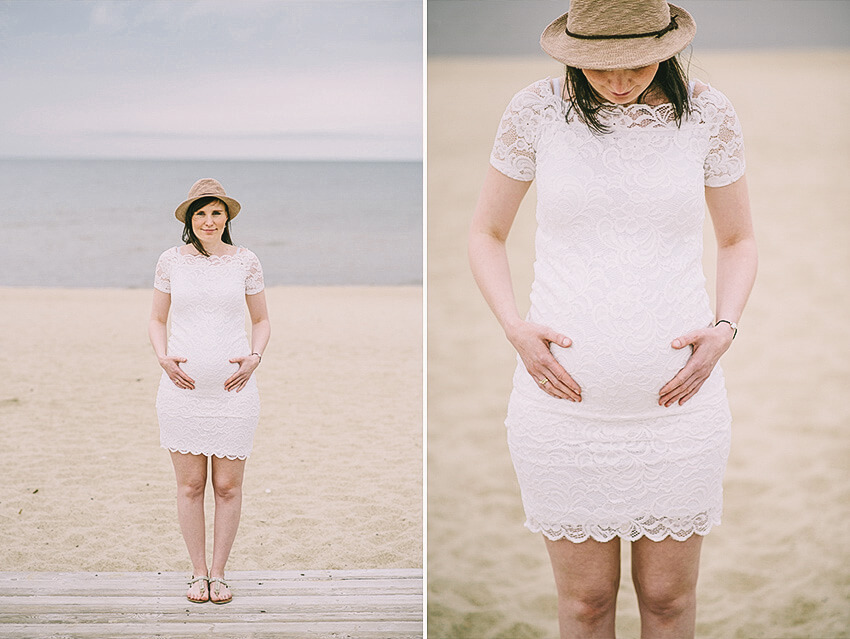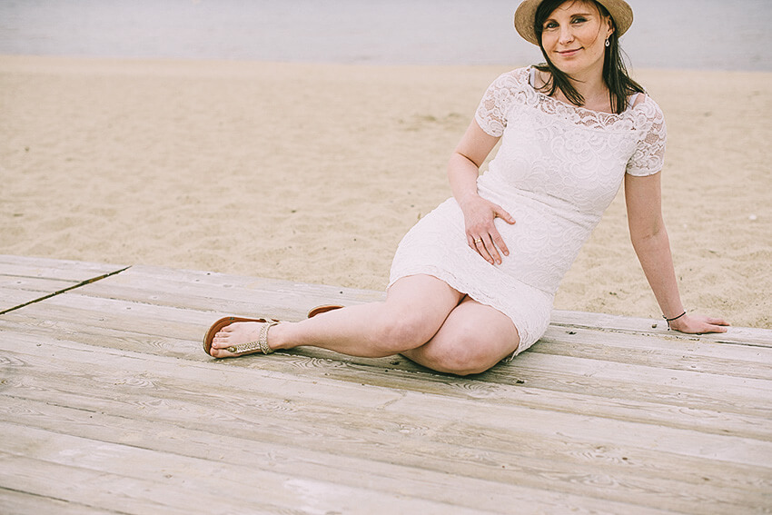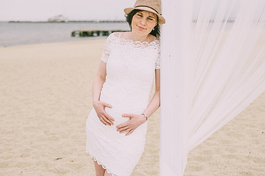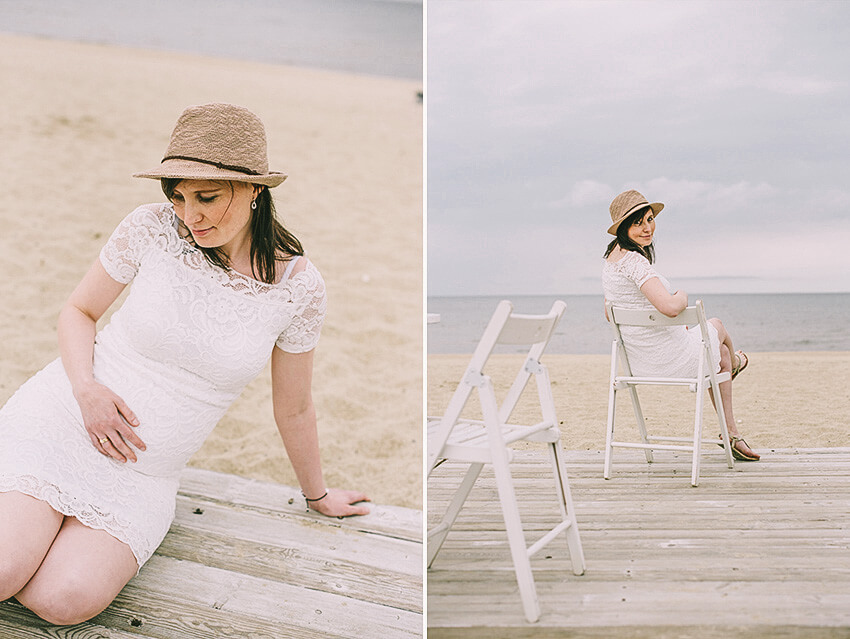 Natalia: Bardzo zależało mi na kilku prostych, szczerych i nie udawanych ujęciach, które zachowają dla mnie na zawsze wspomnienie z czasu pierwszej ciąży. Na co dzień mieszkam w Gdańsku, ale wspólnie z moją kuzynką i jej mężem (tak to o Was, śmiesznie się o Was pisze w trzeciej osobie :P), wybraliśmy się plażę w Sopocie. Znalazłam tam przepiękne, malownicze miejsce i wiedziałam, że będzie idealne na moją sesję. Miejsce to jest w typowo nadmorskim stylu, bo ma takie drewniane deptaki otoczone piaskiem i piękny widok na morze, które uwielbiam. Ta sesja była dla mnie na prawdę wyjątkowa i ważna. W końcu w pierwszej ciąży jest się tylko raz. Bardzo chciałam zachować te wspomnienia i móc do nich wracać w każdej chwili. Chciałam czuć się swobodnie i zachować na zdjęciach samą siebie, taką jaką jestem i dlatego tak bardzo cieszę się z efektów tych zdjęć. Spacer w świetnym towarzystwie, a przy okazji kadry, które będą pamiątkami dla mnie i dla mojego maluszka na całe życie. Bardzo lubię taką naturalność i delikatną kobiecość, a te zdjęcia oddały to idealnie. Jestem taka szczęśliwa, że udało nam się spotkać i przy okazji wykonać tą sesję, bo rzadko mamy okazję się widzieć. Zdjęcia zajęły nam tylko pół godziny, a wyszły takie piękne!