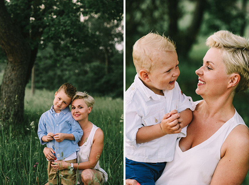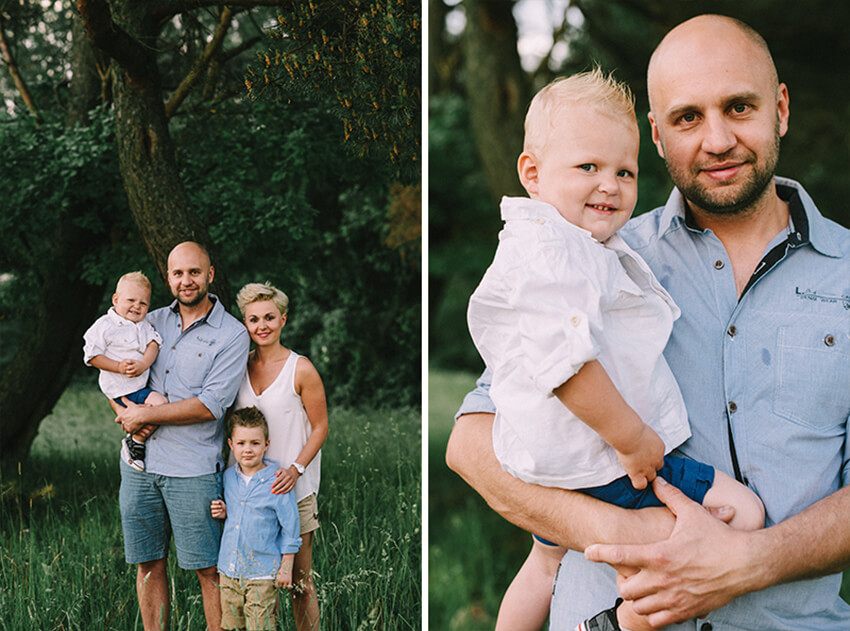 Chłopaki na początku troszkę się wstydzili, ale w ciągu 3 minut zaczęli biegać i wspinać się po drzewach, zapominając o towarzystwie aparatu. Zrobienie wspólnych zdjęć w studio graniczyło by z cudem, a tutaj wśród natury wszystko działo się samo. Wiadomo...dla siebie chcieliśmy mieć kilka "klasycznych" ujęć, ale cała reszta to totalny fun. Fajnie, że znaleźliście też chwilę tylko dla nas, bo ostatnio to duża rzadkość w tym codziennym szaleństwie. Trochę pozazdrościliśmy Natalii pięknej sesji nad morzem , ale teraz jak to było w reklamie Mamby "mam i ja" hehe! Zdjęcia zdążyliśmy już wydrukować i oprawić, zdobią teraz ściany naszego domku, wniosły dużo ciepła i fajnych wspomnień. Super było zobaczyć Was w akcji, teraz wiemy jak wygląda Wasza praca od kuchni i widzimy jak musicie się nabiegać za dzieciakami. To naprawdę niecodzienne i fajne podejście. Dzięki temu nie ma jakieś presji i dziwnych sytuacji. A, że pracuję w przedszkolu to coś o tym wiem. :) Liczę, że będziecie nas Kochani często odwiedzać, z aparatem i bez!