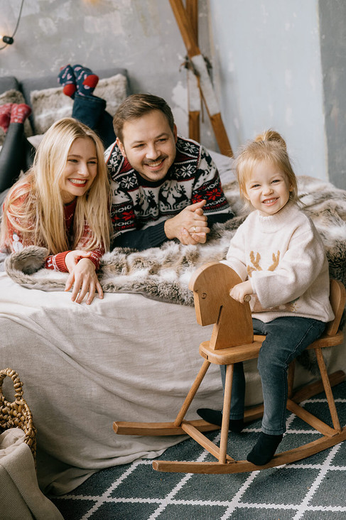 Sesja świąteczna w studio daje nam pewność, że nie zmarzniemy, daje też możliwość zaaranżowania kilku miejsc na raz. Dlatego w tym roku również mogliście wybierać duże studio z czerwono-zielonymi aranżacjami, lub klimatyczną skandynawską sypialnię.